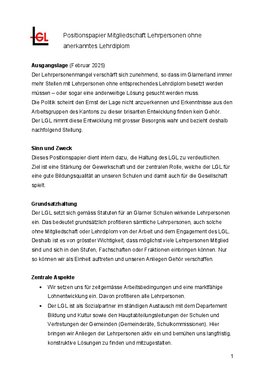 Positionspapier LGL: Mitgliedschaft von Lehrpersonen ohne anerkanntes Diplom