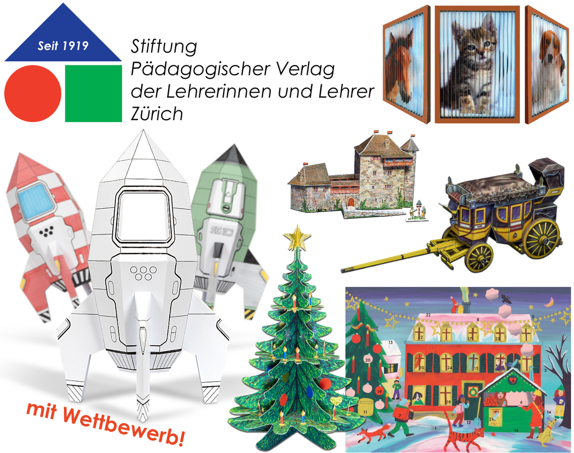 Mit Freude präsentiert der Pädagogische Verlag, der schon seit über 100 Jahren Modellbogen anbietet, verschiedene Sortimentsneuigkeiten. Mit "Meine Rakete" steht ein einfacher Bastelbogen zur Verfügung, dessen Teile bereits vorgestanzt sind und ganz nach eigenem Gusto gestaltet werden können. Dazu wird gar ein Gestaltungs-WETTBEWERB durchgeführt, bei dem Einzelpersonen oder ganze Schulklassen teilnehmen und ihrer Kreativität freien Lauf lassen können. Einsendeschluss ist der 31. Dezember 2025. Mehr Infos dazu unter www.modellbogen.ch.